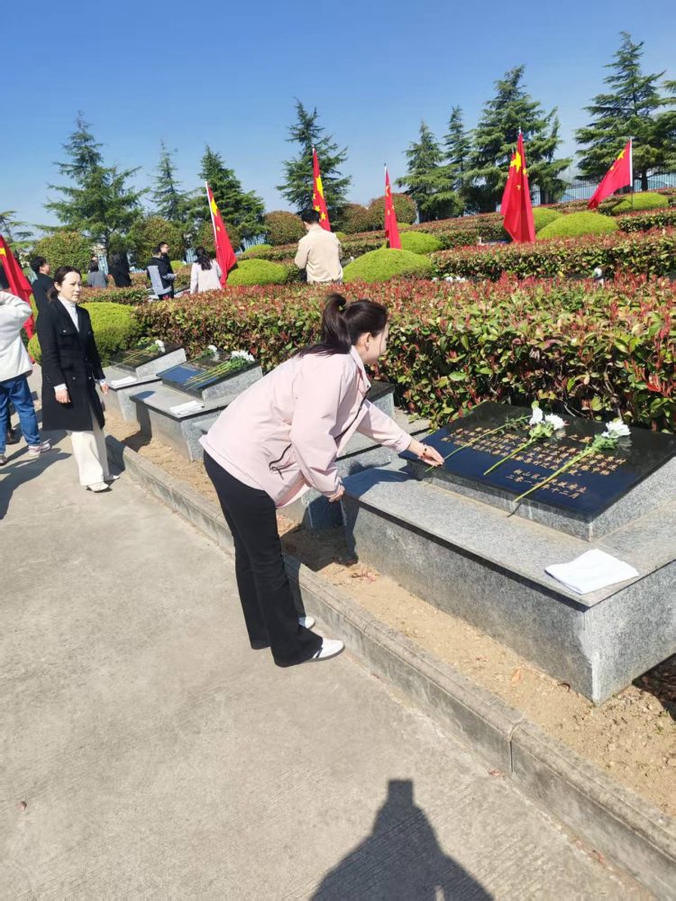 活動(dòng)伊始,全體黨員整齊列隊(duì),懷著崇敬之情向革命烈士敬獻(xiàn)花籃,寄托著對(duì)先烈們的無(wú)限哀思與崇高敬意。隨后,在鮮紅的黨旗前,全體黨員莊嚴(yán)地舉起右拳,重溫入黨誓詞。鏗鏘有力的誓言在陵園上空回蕩,彰顯了黨員們不忘初心、牢記使命的政治信念。最后,黨員們有序參觀了陵園內(nèi)的紀(jì)念碑,支部書記楊旸同志帶領(lǐng)支部黨員紛紛向英雄先烈們獻(xiàn)上鮮花