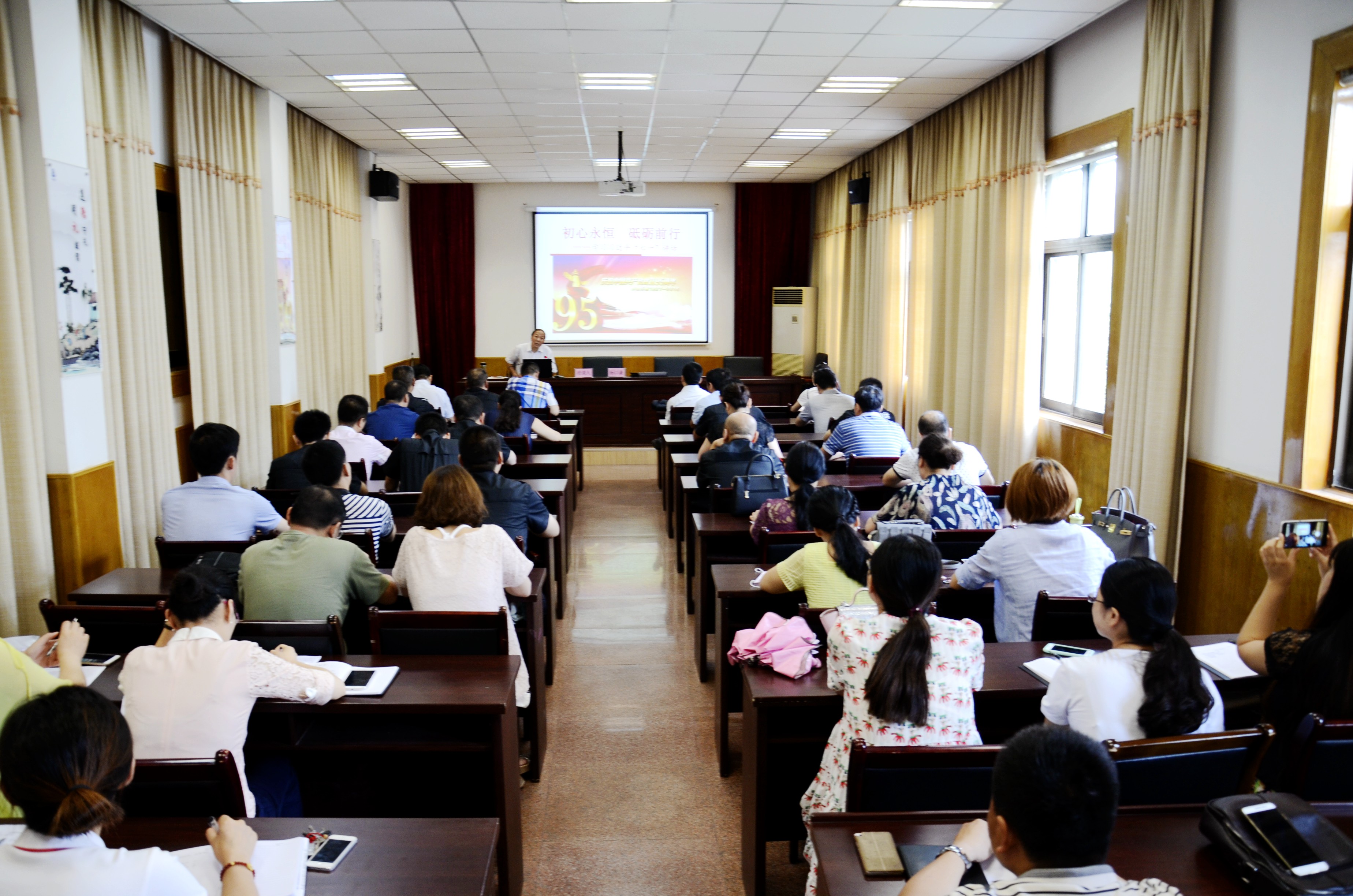 講座邀請市學(xué)習(xí)習(xí)近平總書記“七一” 重要講話精神宣講團(tuán)成員、市委黨校副校長、市委黨校教授、市政協(xié)常委楊以謙教授作了題為《初心永恒 砥礪前行——學(xué)習(xí)習(xí)近平“七一”講話》的講座。楊以謙教授從學(xué)習(xí)習(xí)近平“七一”講話“不忘初心”為切入點(diǎn),以理論和實(shí)際相結(jié)合的科學(xué)方法,運(yùn)用豐富的黨史資料,通過詳實(shí)的事例、透徹的說理、生動的表述,深入淺出地闡述了對中國共產(chǎn)黨對中國乃至全世界所作出的杰出貢獻(xiàn),并聯(lián)系淮北實(shí)際強(qiáng)調(diào)了“兩學(xué)一做”的重要性。
